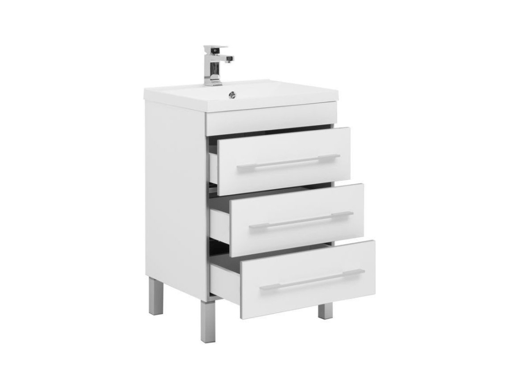 Тумба напольная с раковиной серии Верона с покрытием из качественного акрила — такая отделка придает эффектности внешнему виду и повышает уровень влагозащиты. Применение акрила в производстве мебели для ванных — уникальное предложение, созданное на специализированной линии предприятия. Нейтральный цвет универсален, потому мебель Верона можно совмещать с любыми оттенками в интерьере и разнообразием креативных идей. Экстравагантная геометричность формы подчеркнута горизонтальными линиями фурнитуры ручек выдвижных ящиков. Их вместительное пространство обеспечит дополнительное место хранения банных принадлежностей.