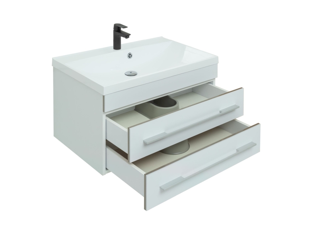 Подвесная тумба с раковиной серии Верона с покрытием из качественного акрила — такая отделка придает эффектности внешнему виду и повышает уровень влагозащиты. Применение акрила в производстве мебели для ванных — уникальное предложение, созданное на специализированной линии предприятия. Навесной модуль имеет вместительные ящики, удобный для хранения полотенец. Экстравагантная геометричность формы подчеркнута горизонтальными линиями фурнитуры ручек выдвижных ящиков. Нейтральный цвет тумбы Верона универсален и ее можно совмещать с любыми оттенками в интерьере и разнообразием креативных идей. Сделать навесной мебельный комплект максимально цельным поможет подкатная тумба Верона, выполненная в том же стиле. Она добавит места для хранения банных принадлежностей и станет удобной площадкой, которая может использоваться как подставка или даже сиденье.