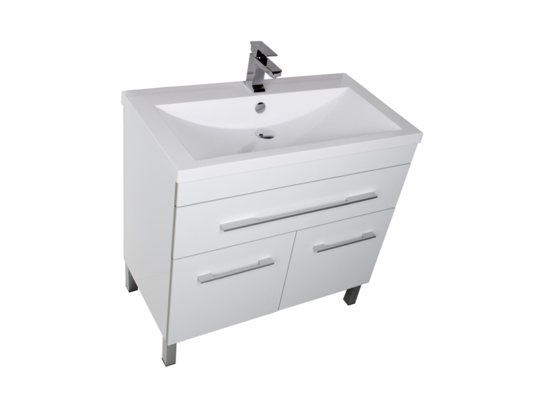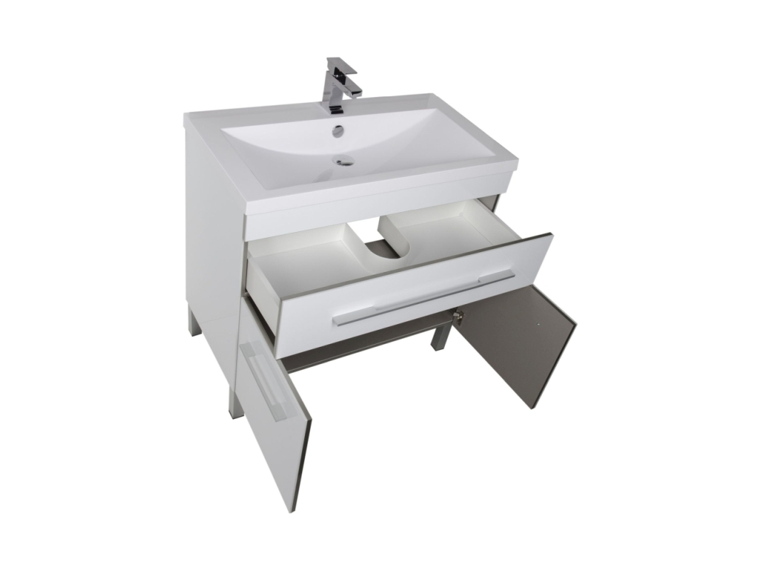 Тумба напольная с раковиной серии Верона с покрытием из качественного акрила — такая отделка придает эффектности внешнему виду и повышает уровень влагозащиты. Применение акрила в производстве мебели для ванных — уникальное предложение, созданное на специализированной линии предприятия. Нейтральный цвет универсален, потому мебель Верона можно совмещать с любыми оттенками в интерьере и разнообразием креативных идей. Экстравагантная геометричность формы подчеркнута горизонтальными линиями фурнитуры ручек выдвижных ящиков. Их вместительное пространство обеспечит дополнительное место хранения банных принадлежностей.
