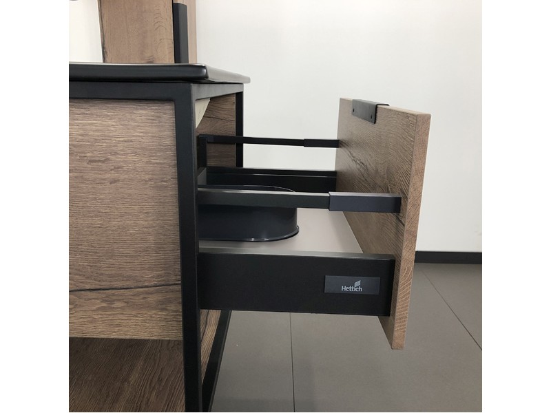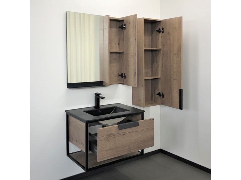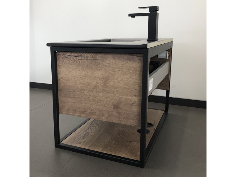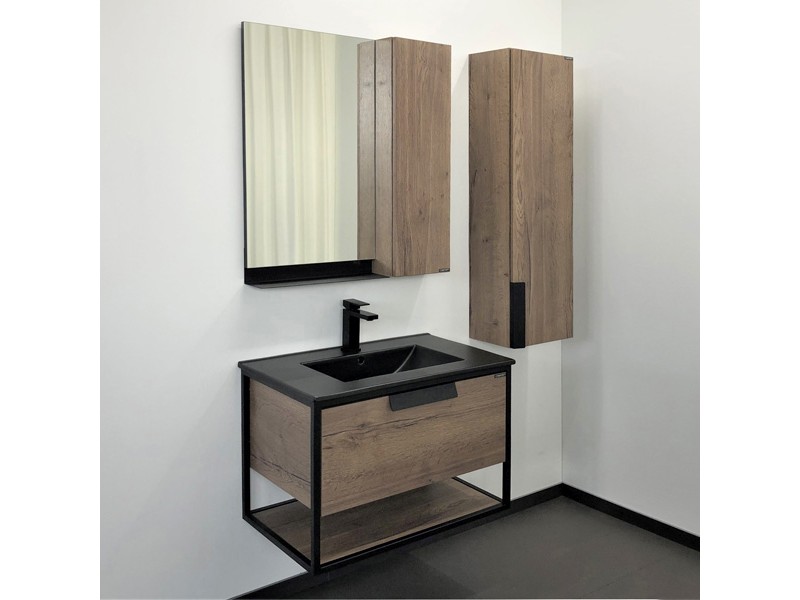 В основе тумбы - каркас из стального профиля окрашенный черной матовой эмалью. Матовая керамическая раковина Comforty 75E из санфарфора.