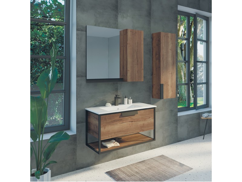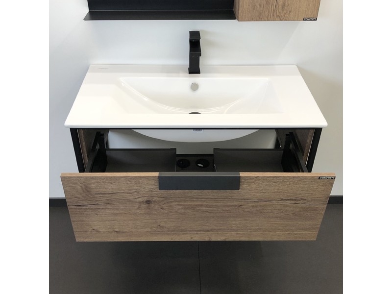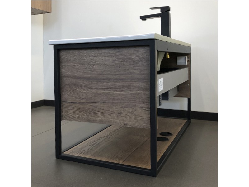 В основе тумбы - каркас из стального профиля окрашенный черной матовой эмалью. Керамическая раковина Quadro 90 из санфарфора.