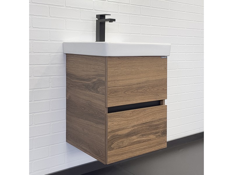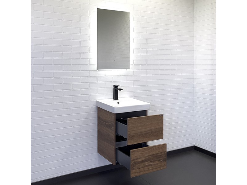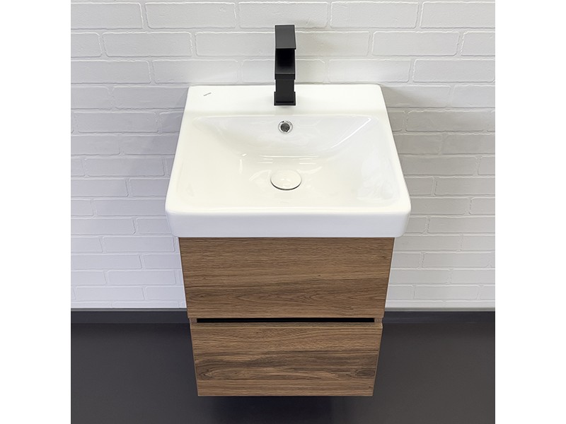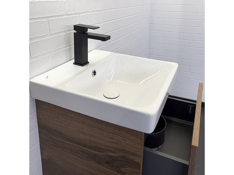 Подвесная тумба-умывальник с двумя ящиками оборудованными направляющими плавного закрывания. В комплекте керамическая раковина Адриана 45.