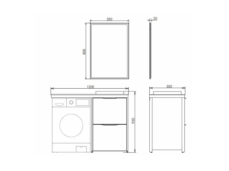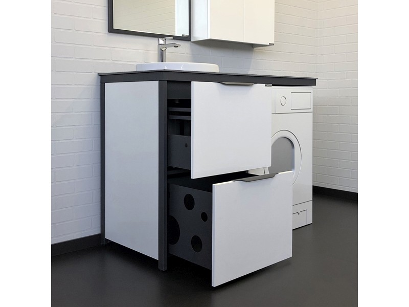 Комплект «Лозанна» разработан для рационального использования места в ванной комнате и объединяет под одной столешницей стиральную машину и тумбу с умывальником.