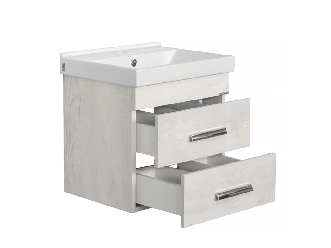 Подвесная тумба с двумя выдвижными ящиками, оснащенным системой плавного закрывания. Тумба подготовлена для подключения водоснабжения снизу.