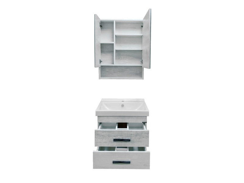 Тумба с двумя выдвижными ящиками, оснащенным системой плавного закрывания. Тумба подготовлена для подключения водоснабжения снизу.
