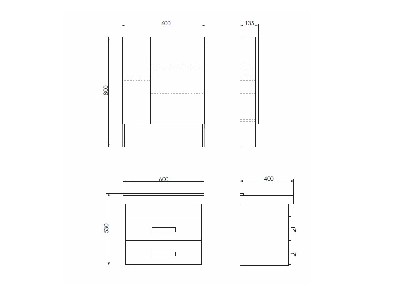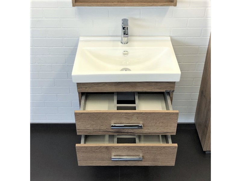 Тумба с двумя выдвижными ящиками, оснащенным системой плавного закрывания и хромированными ручками. Тумба подготовлена для подключения водоснабжения снизу. Название: Тумба-умывальник подвесная