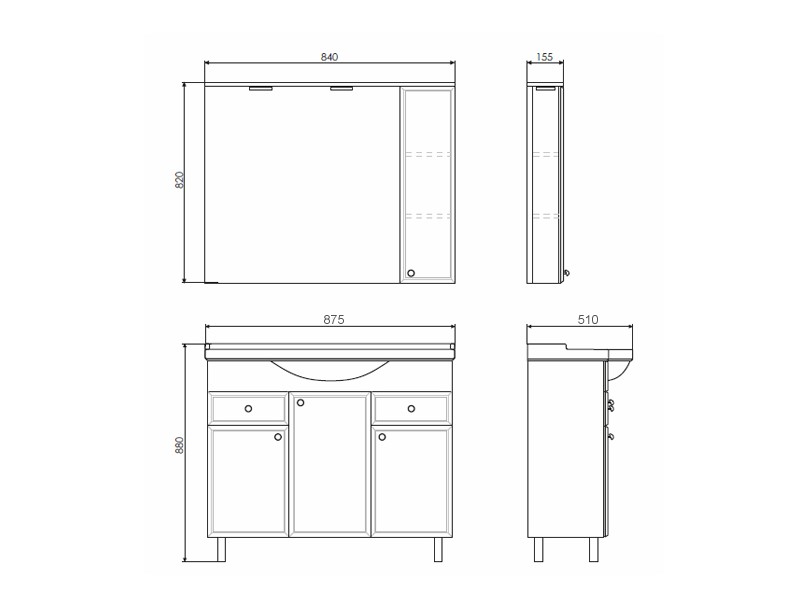 Габариты (ШхВхГ): 875*880*510 мм.