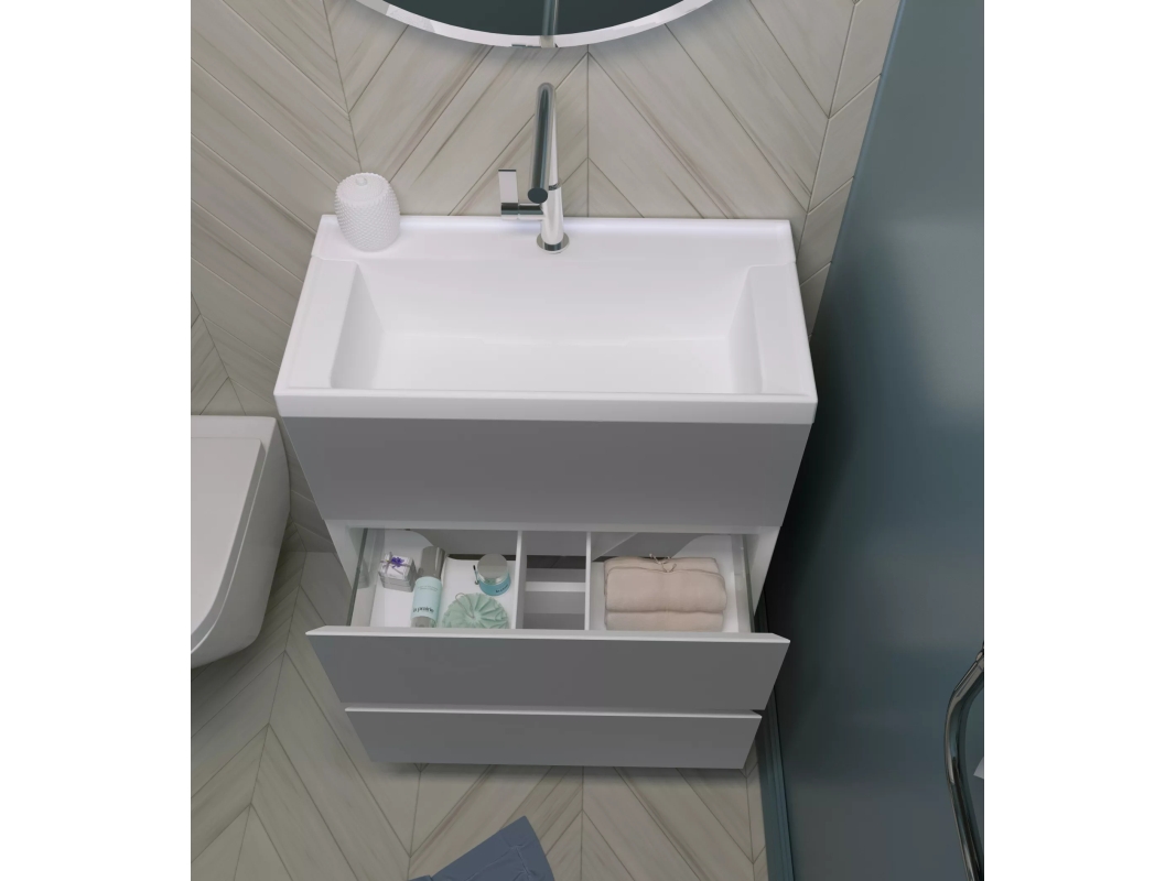 Тумба с раковиной Bumble - поистине уникальная модель, которая первой в России представляет вниманию покупателей раздвижную раковину. Она особенно актуальна для небольших помещений - с одной стороны позволяет экономить пространство, с другой - при необходимости пользоваться полноценной большой раковиной. Выдвижные ящики идеальны для комфортного хранения всего необходимого, а стильный и лаконичный дизайн без лишней фурнитуры полностью соответствует всем актуальным тенденциям.
