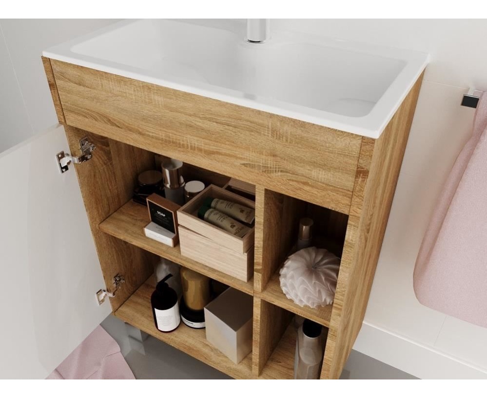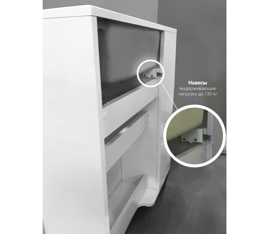 Компактная мебель с уникальными габаритами - глубина тумбы всего 30 см. Мебель выполнена в современном минималистичном стиле, для которого характерны правильные геометрические формы, рациональность и эргономичность. Специально продуманная конструкция без ручек позволяет создать цельный легкий образ, не утяжеленный фурнитурой и дает возможность гармонично вписаться в любой интерьер. Для бережливой повседневной эксплуатации, тумбы оснащены демпферами и дверными петлями с доводчиками, обеспечивающими бесшумное и мягкое закрывание.