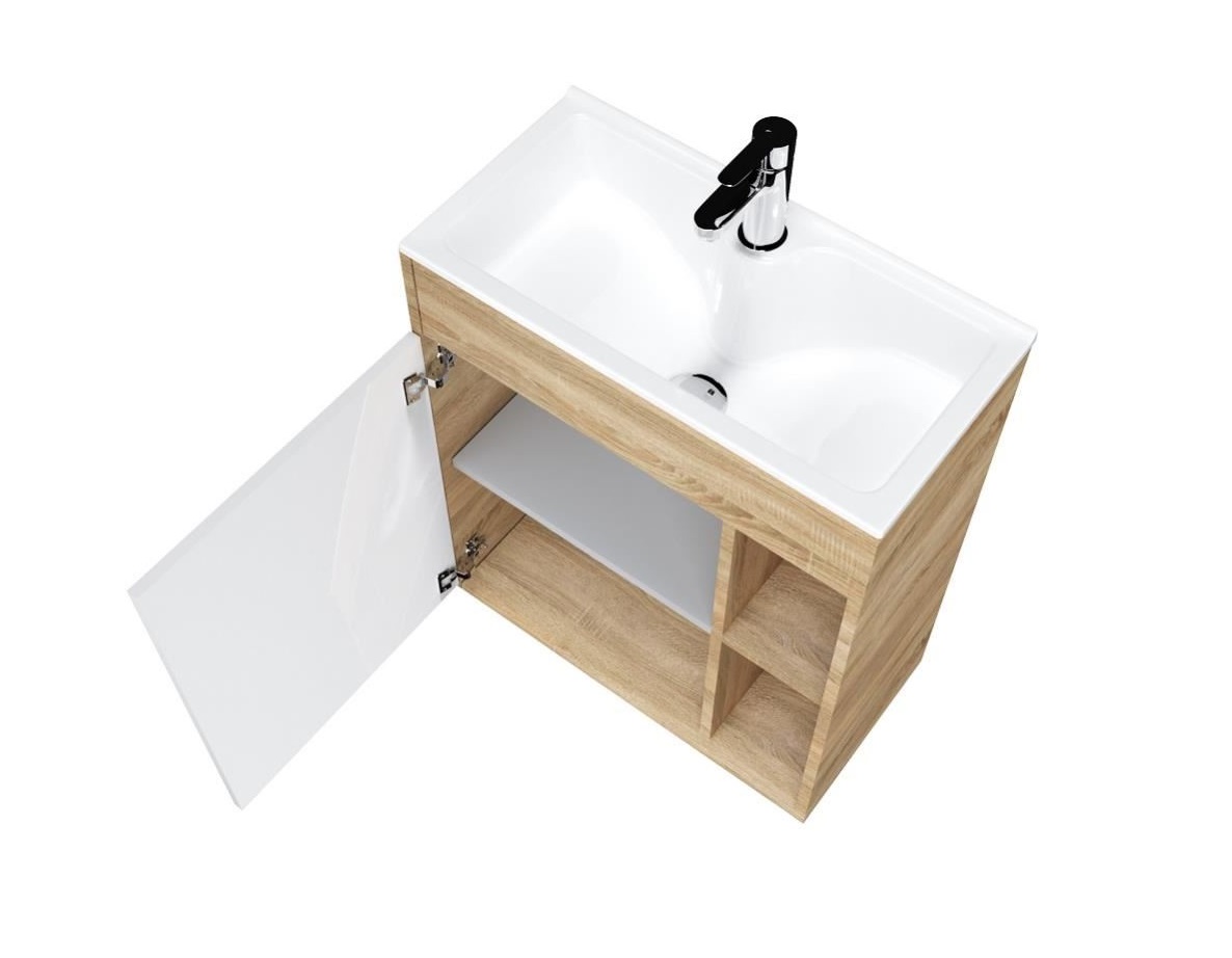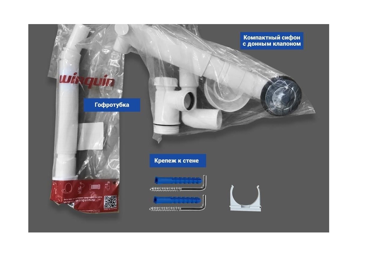 В комплекте идет раковина из полимерной керамики и специализированный регулируемый телескопический сифон.