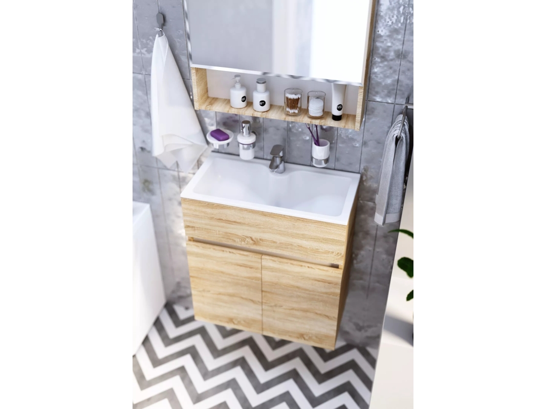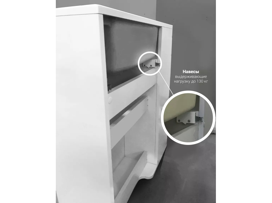 - конструкция "без ручек": внешний вид не перегружен лишними деталями, а пользоваться шкафчиком еще удобнее;