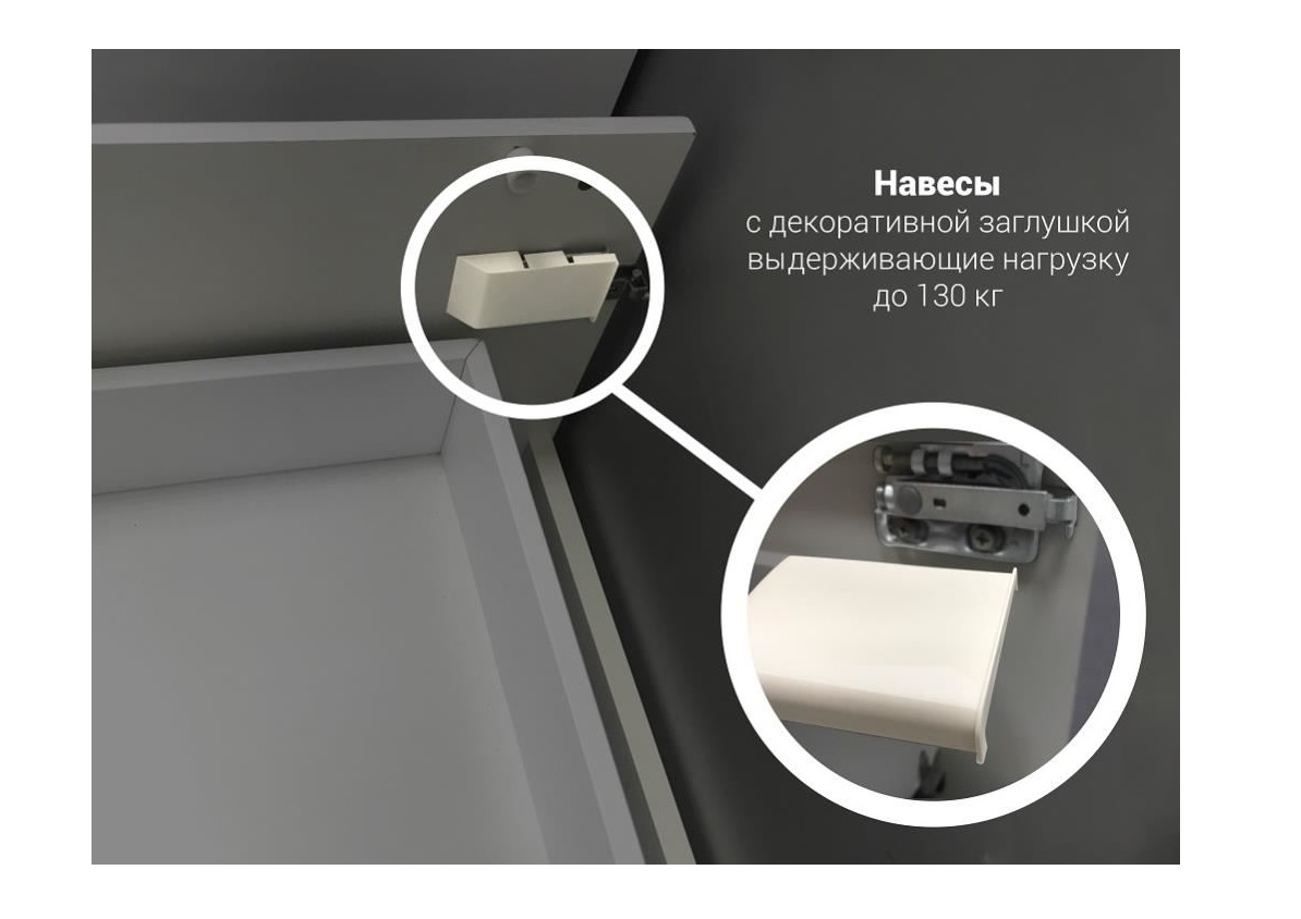 Корпус МДФ (Egger), покрытый пленкой ПВХ. Фасад ЛДСП. Фурнитура Hettich.