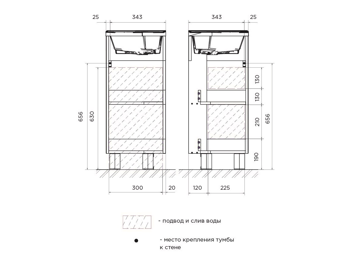 Для бережливой повседневной эксплуатации, тумбы оснащены демпферами и дверными петлями с доводчиками, обеспечивающими бесшумное и мягкое закрывание. Благодаря угловой конструкции тумба компактна и достаточно вместительна, а подвод воды внутри тумбы можно произвести как с левой стороны так и справой.