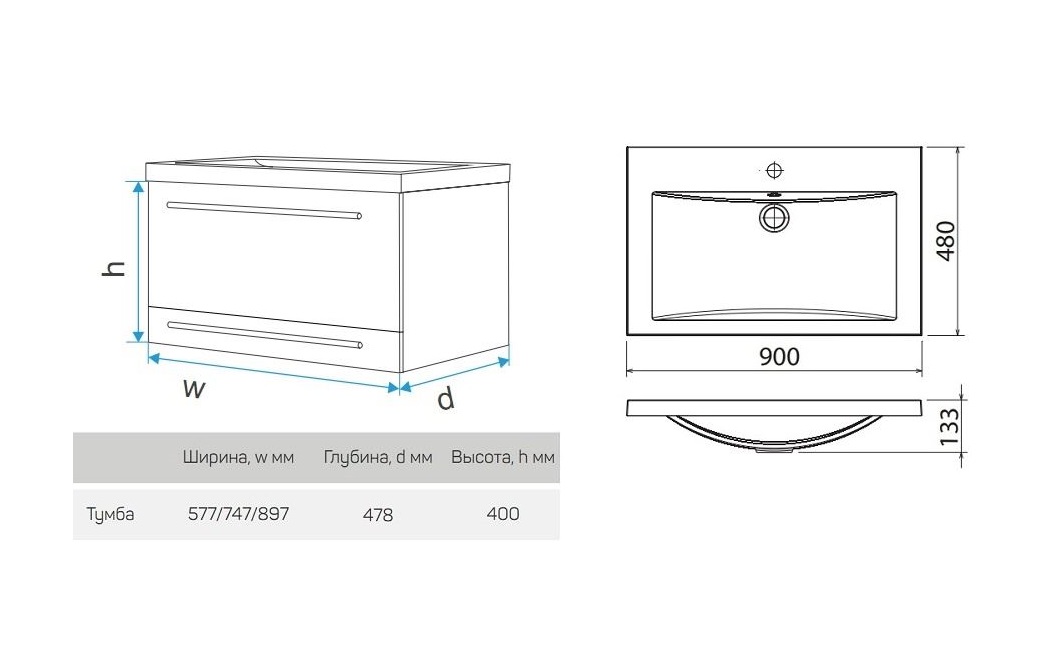 Тумба с Раковиной «MarkaOne» соната 90п, Белый Глянец, 2 Ящика (4604613322083)