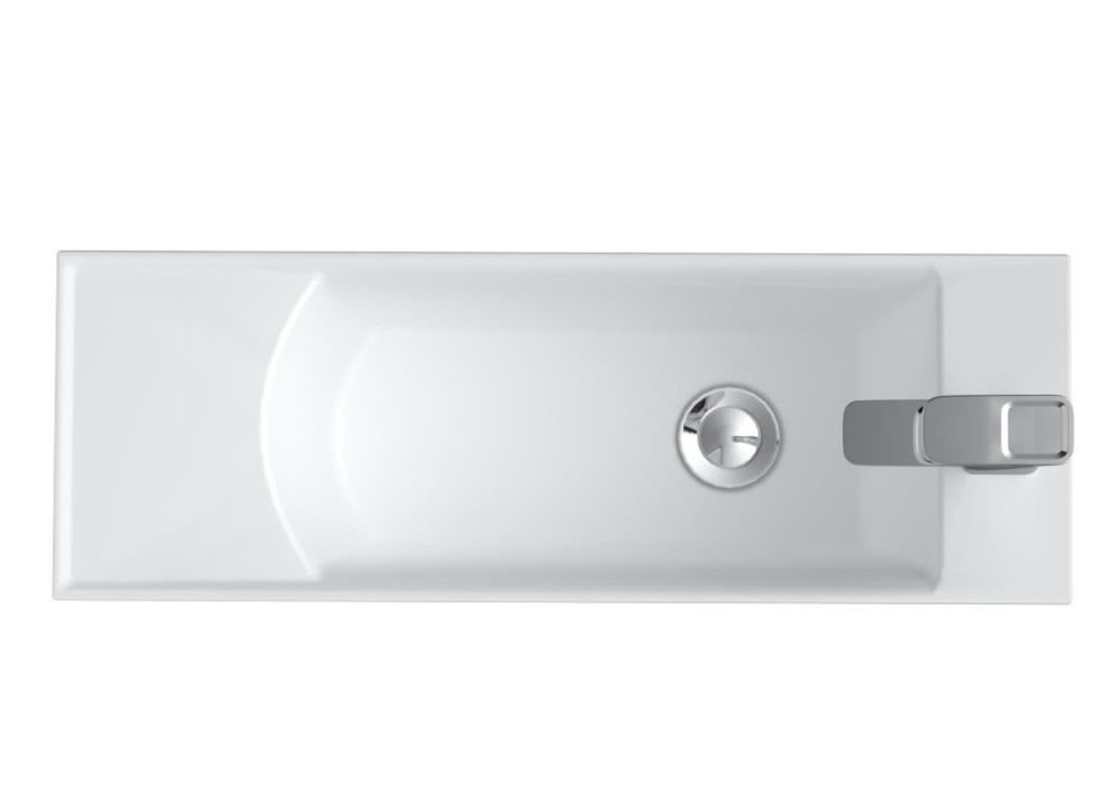 Раковина – предельно узкая, всего 21см. Выполнена из полимерной керамики. Чтобы еще больше сэкономить полезное пространство, края сделаны тонкими, радиус закругления небольшим. Приподнятые грани по периметру обеспечивают эффективный сток воды. Есть небольшая площадка для диспенсера с мылом. На противоположной стороне – отверстие под смеситель. Есть слив-перелив.