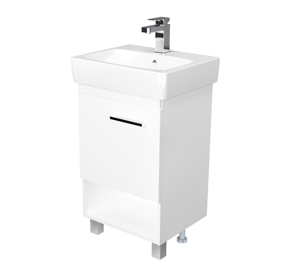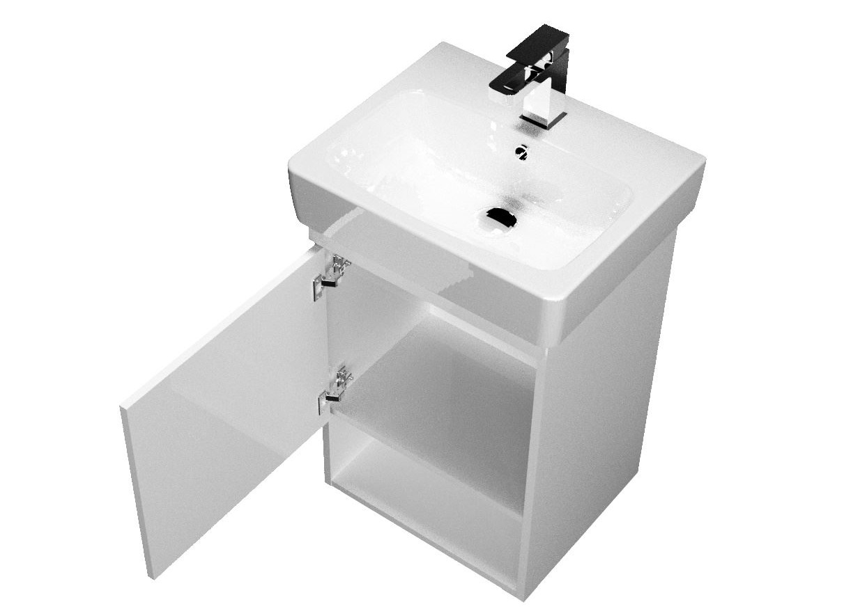 Компактная мебель выполнена в современном минималистичном стиле, для которого характерны правильные геометрические формы, рациональность и эргономичность. Для бережливой повседневной эксплуатации, тумбы оснащены демпферами и дверными петлями с доводчиками, обеспечивающими бесшумное и мягкое закрывание.