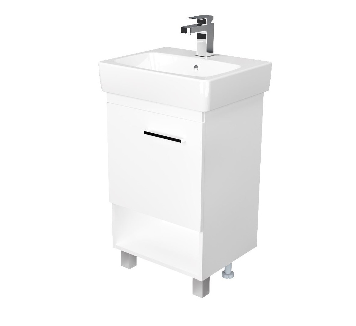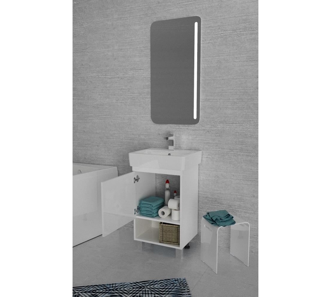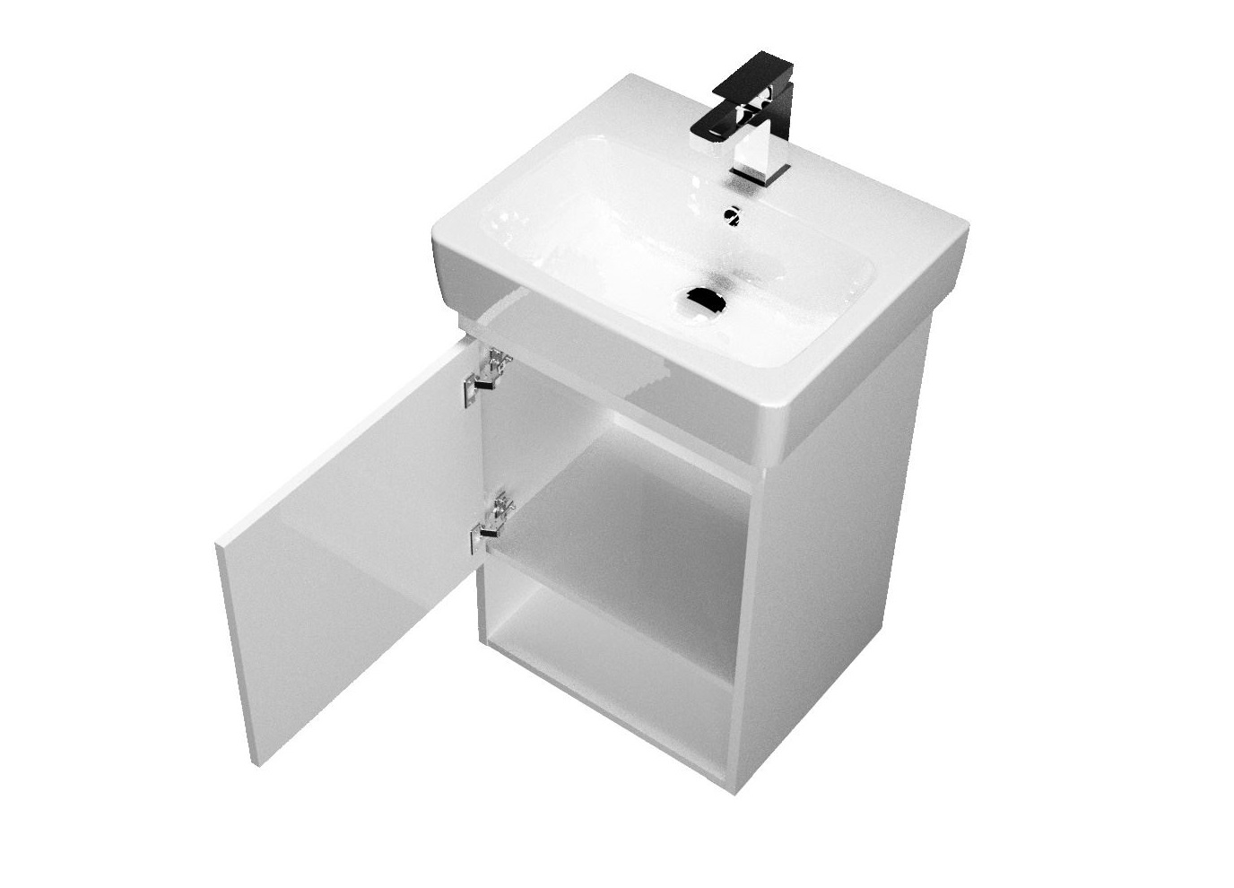Компактная мебель выполнена в современном минималистичном стиле, для которого характерны правильные геометрические формы, рациональность и эргономичность. Для бережливой повседневной эксплуатации, тумбы оснащены демпферами и дверными петлями с доводчиками, обеспечивающими бесшумное и мягкое закрывание.
