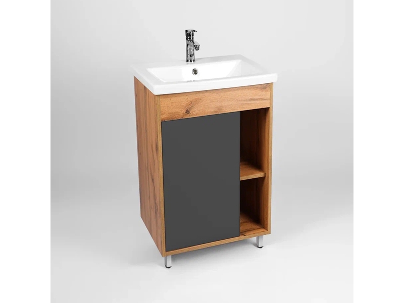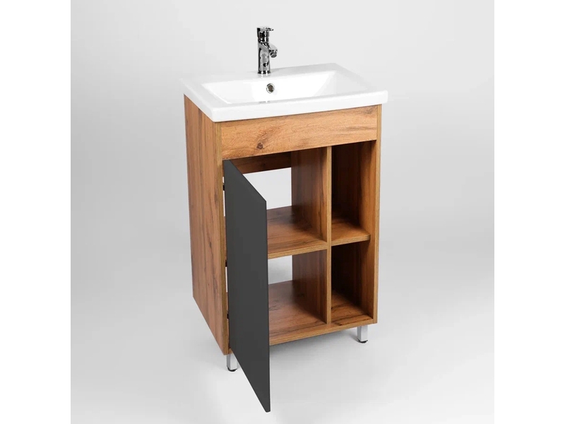 Компактная напольная тумба-умывальник Виант Бостон 50 с одной створкой и полками открытого хранения - укомплектована керамической раковиной Cersanit Como 50