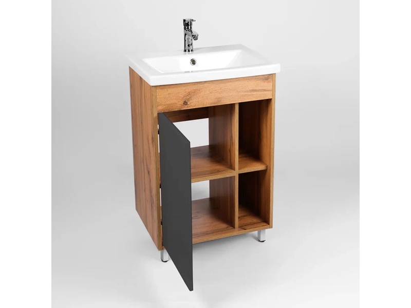 Напольная тумба-умывальник Виант Бостон 60 с одной створкой и полками открытого хранения - укомплектована керамической раковиной Cersanit Como 60