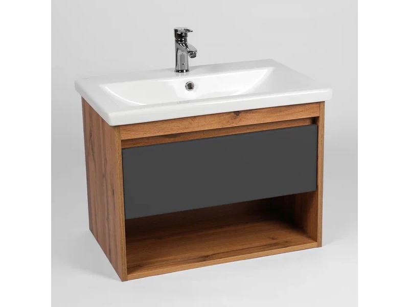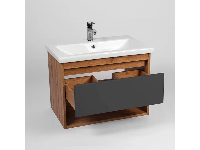 Подвесная тумба-умывальник Виант Бостон 80 с одним выдвижным ящиком и пространством открытого хранения - укомплектована керамической раковиной Cersanit Como 80