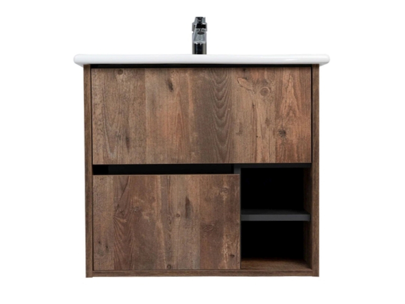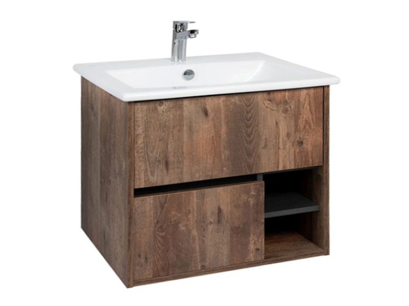 Подвесная тумба-умывальник Виант Люксембург 75 с двумя ящиками и полками открытого хранения - укомплектована керамической раковиной Santek Элина 75