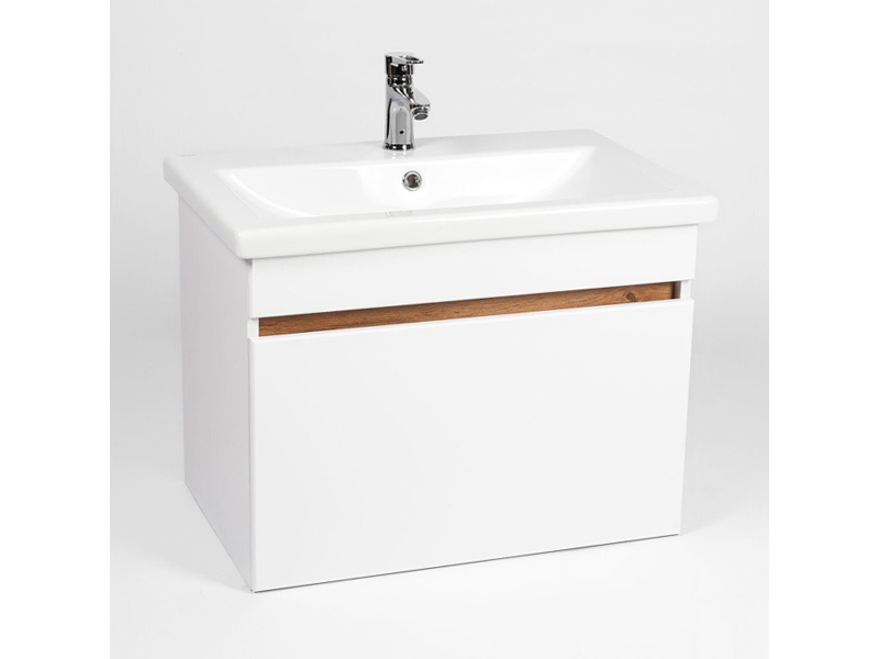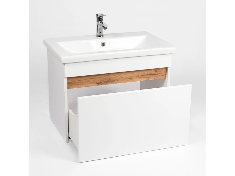 Подвесная тумба-умывальник Виант Мальта 50 с одним выдвижным ящиком укомплектована керамической раковиной Cersanit Como 50