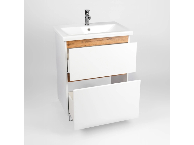 Напольная тумба-умывальник Виант Мальта 60 с двумя выдвижными ящиками укомплектована керамической раковиной Cersanit Como 60
