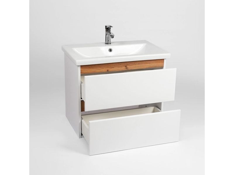 Подвесная тумба-умывальник Виант Мальта 60 укомплектована керамической раковиной Cersanit Como 60