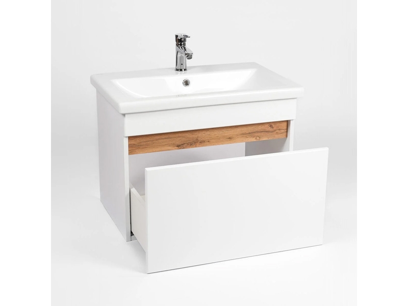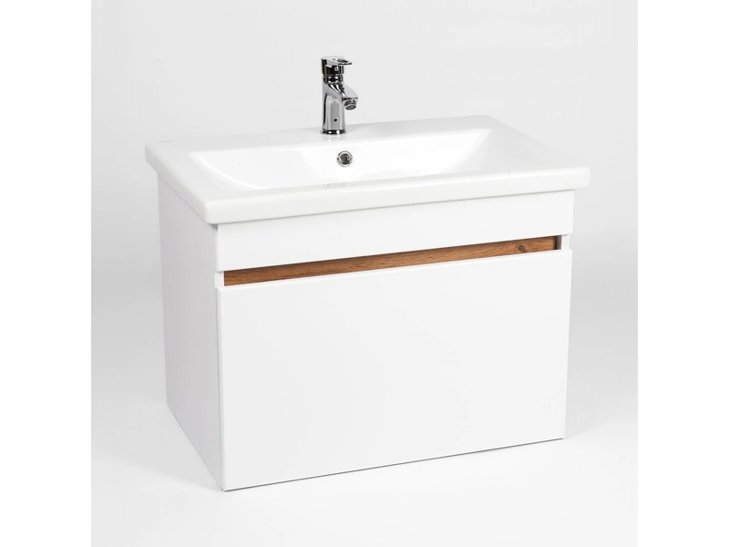 Подвесная тумба-умывальник Виант Мальта 70 с одним выдвижным ящиком укомплектована керамической раковиной Cersanit Como 70
