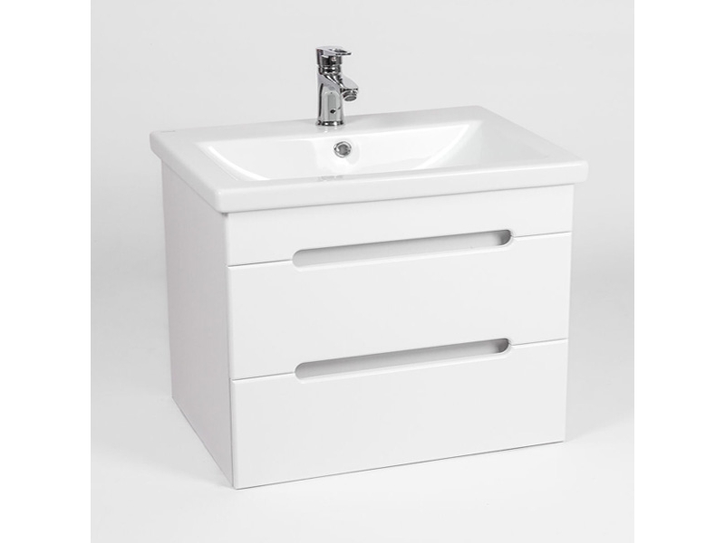 Подвесная тумба-умывальник Виант Марсель 80 с двумя выдвижными ящиками укомплектована керамической раковиной Cersanit Como 80