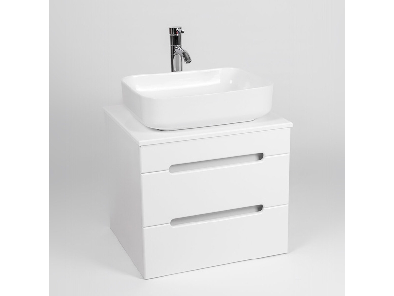 Белая подвесная тумба-умывальник Виант Марсель со столешницей L66 и двумя ящиками - укомплектована керамической раковиной Cersanit Moduo Square 50