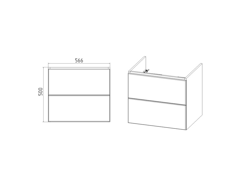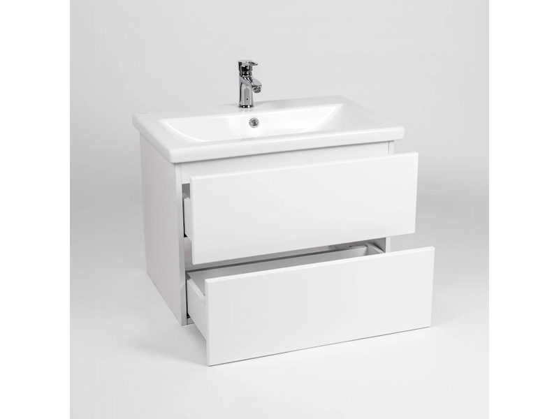 Подвесная тумба-умывальник Виант София 60 с двумя выдвижными ящиками укомплектована керамической раковиной Cersanit Como 60