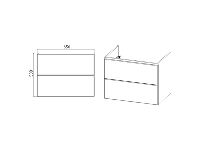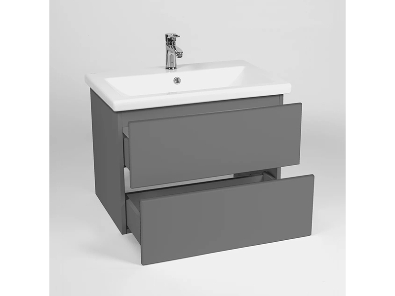 Подвесная тумба-умывальник Виант София 70 с двумя выдвижнымм ящиками укомплектована керамической раковиной Cersanit Como 70