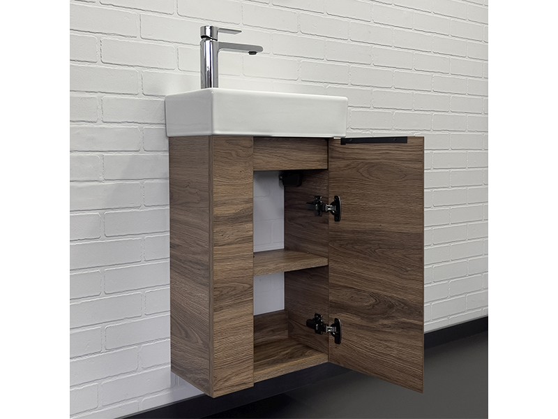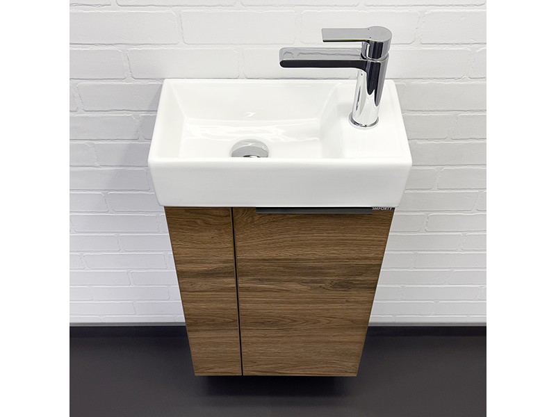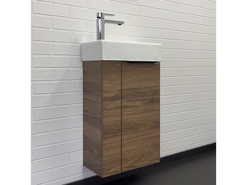 Компактная подвесная тумба-умывальник Comforty Асти для небольших санузлов. Фасад и корпус тумбы изготовлены из влагостойкого ДСП. В комплекте асимметричная раковина с отверстием под смеситель сбоку. Раковина покрыта глазурью со всех сторон, поэтому может быть установлена как в правом, так и в левом варианте.