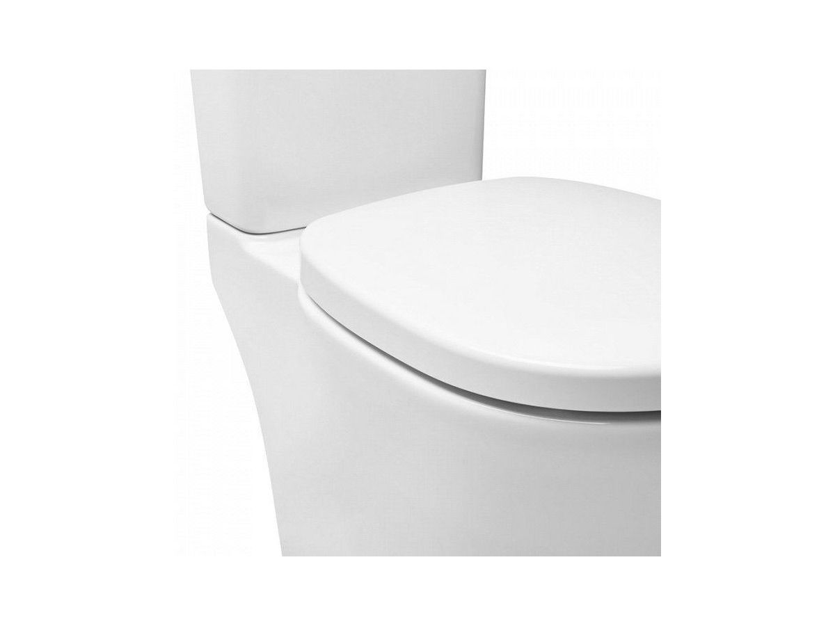 Унитаз-компакт с сиденьем из дюропласта с функциями Soft Close и Easy Fix, горизонтальный выпуск, двухуровневая водосливная арматура с кнопкой 38 мм. Упаковка: картонная коробка.