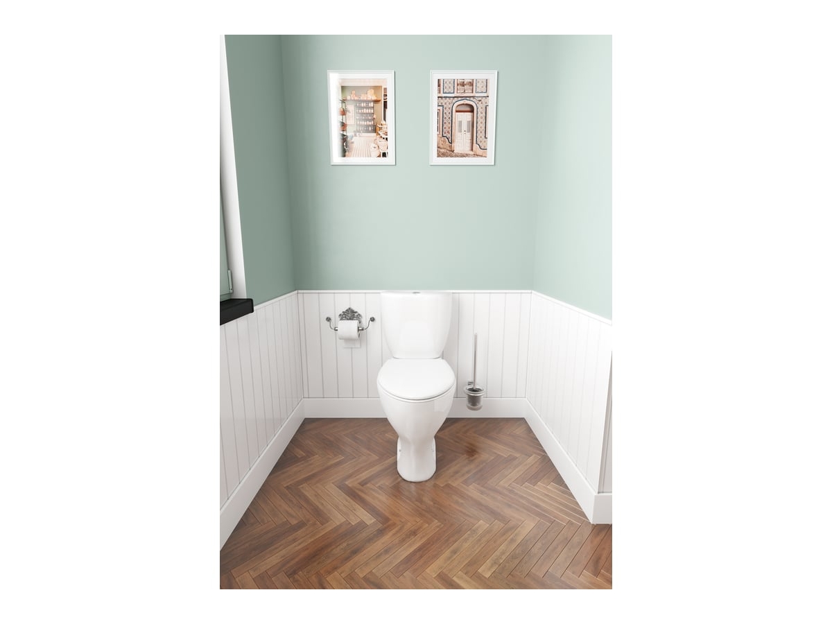 - Современный и утонченный дизайн: Чистые линии и классический белый цвет делают унитаз универсальным, подходящим для любого интерьера, от традиционного до современного.