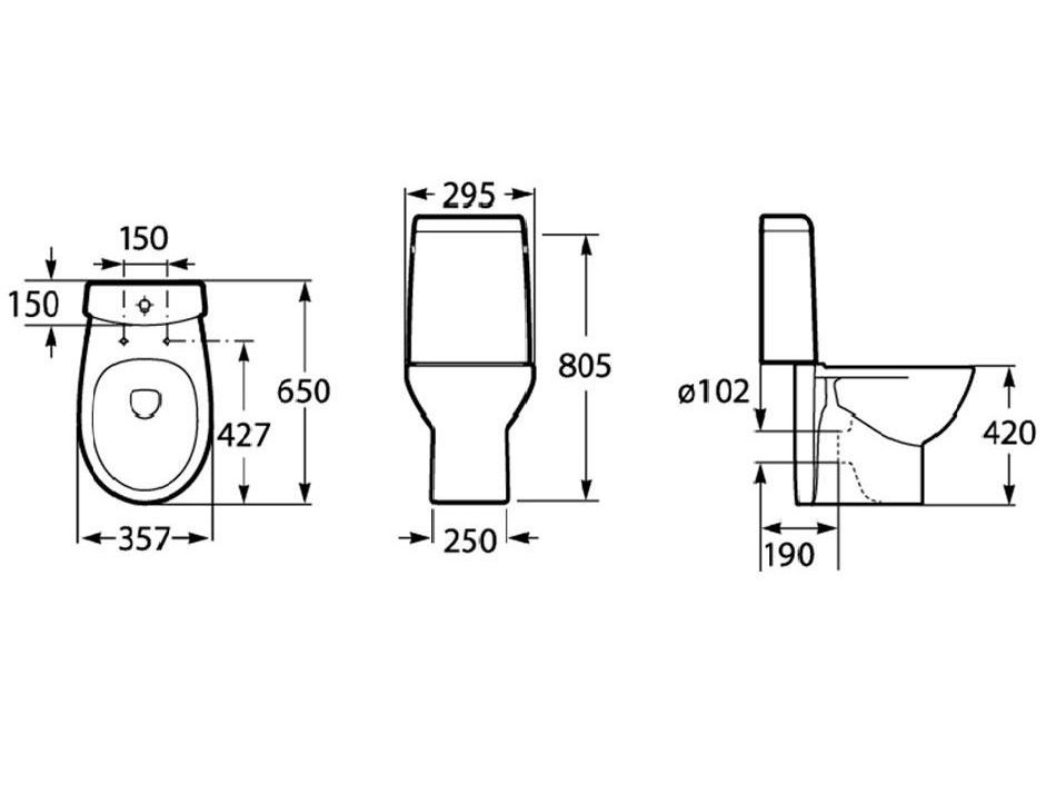 Унитаз Напольный Овальный, Выпуск Горизонтальный (в стену), Слив Двухрежимный, Материал Фарфор, Подвод воды Снизу бачка