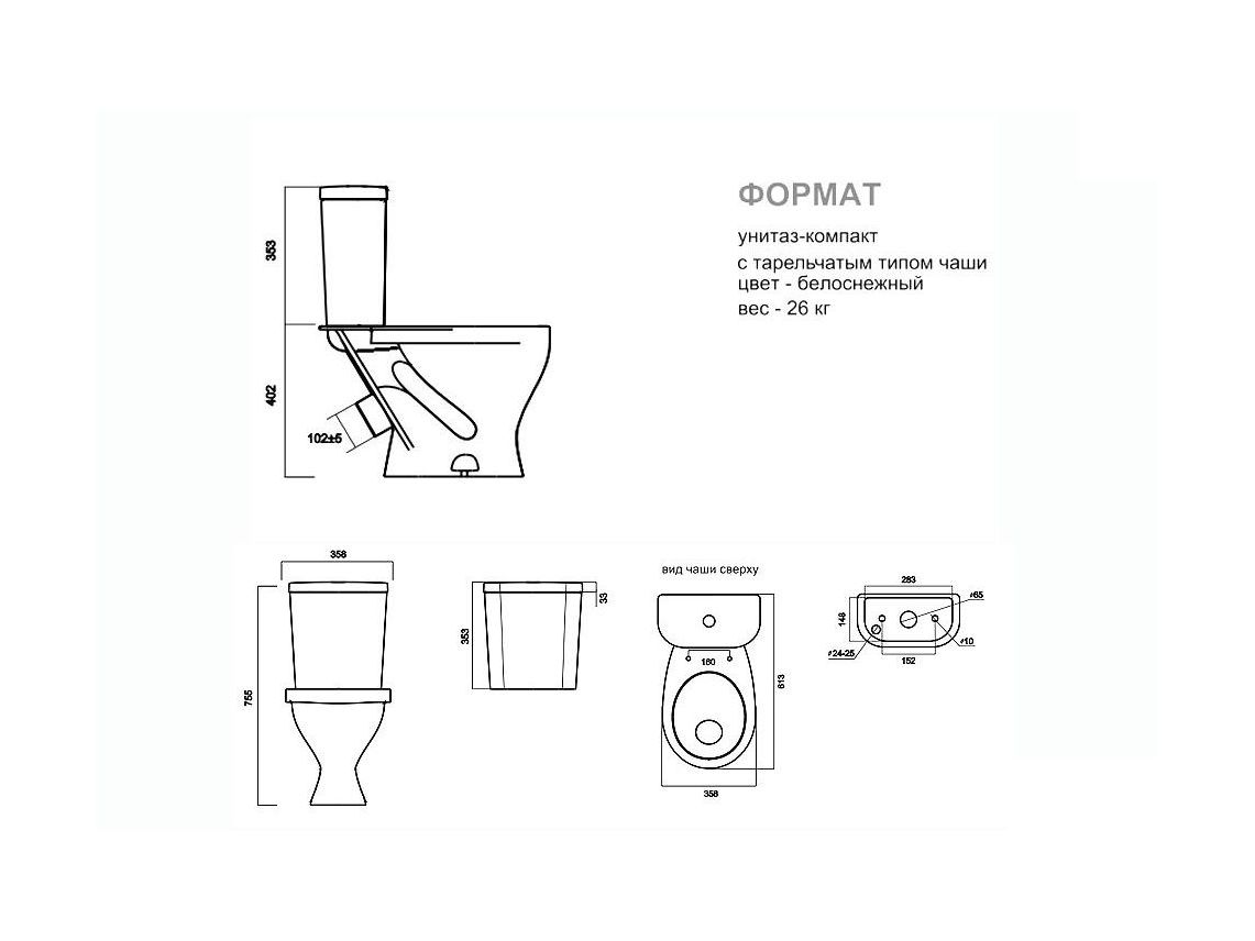 От санузла в современном жилье ждут удобства, чистоты и эстетичности. Согласны? Тогда «Формат» — то, что вам нужно. Удобный унитаз с продуманным дизайном по хорошей цене для тех, кто выбирает в сантехнике практичность и функциональность. В чаше имеется полочка-выступ, которая служит для противодействия всплеску воды.