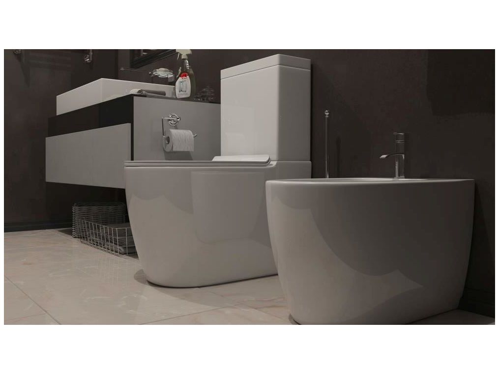 Унитаз напольный KULO ТК-401 пристенного типа с бачком. Модель с безободковым сливом и горизонтальным выпуском.