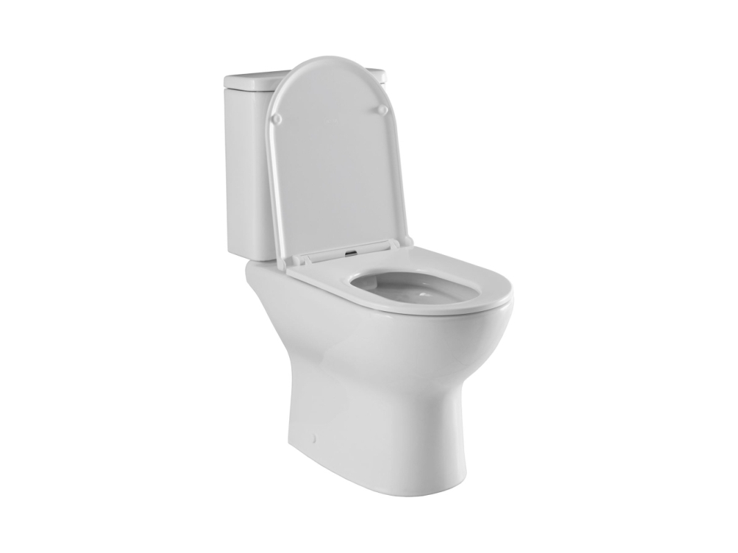 Унитаз с бачком, арматурой бачка с кнопкой и сиденьем Особенности: