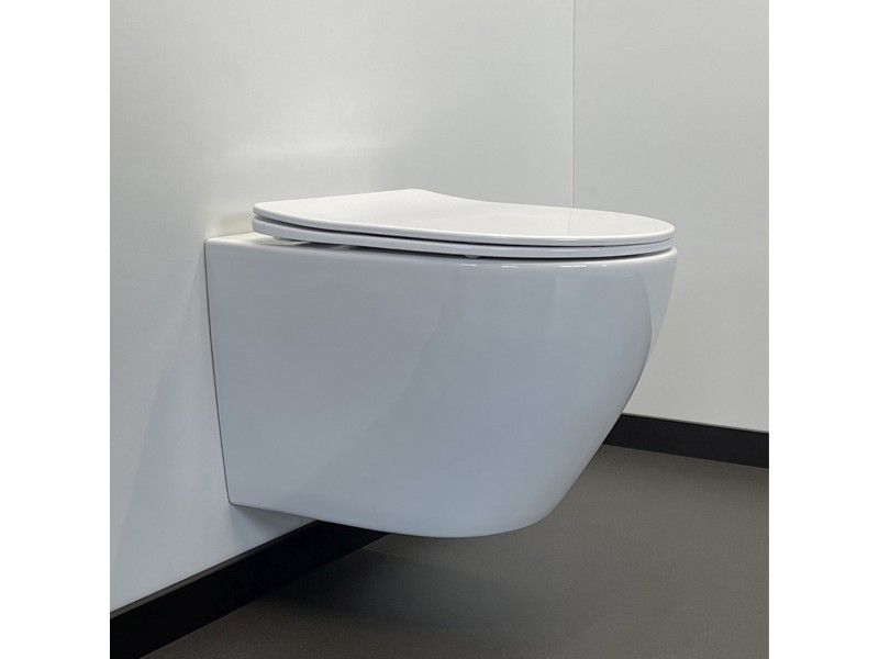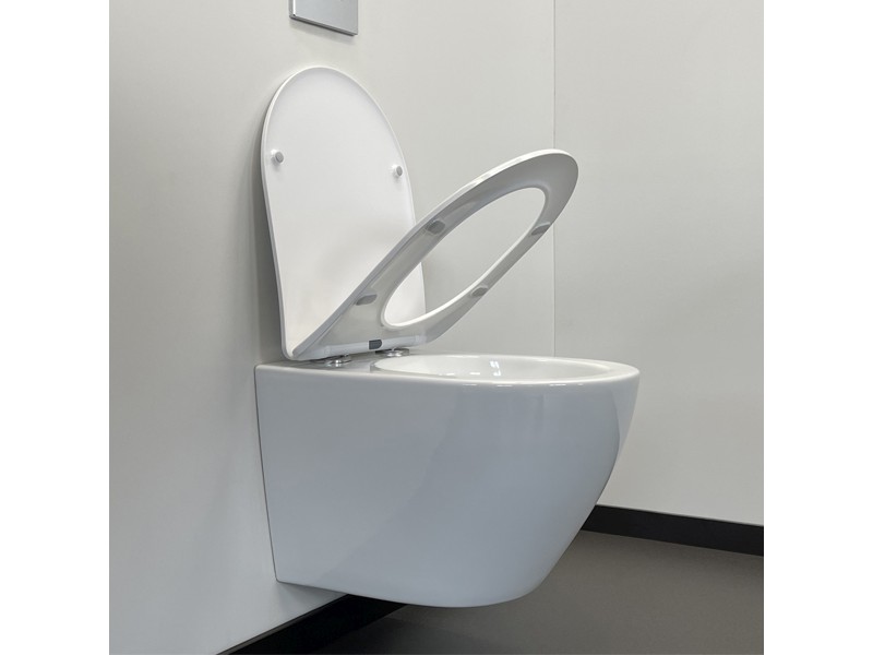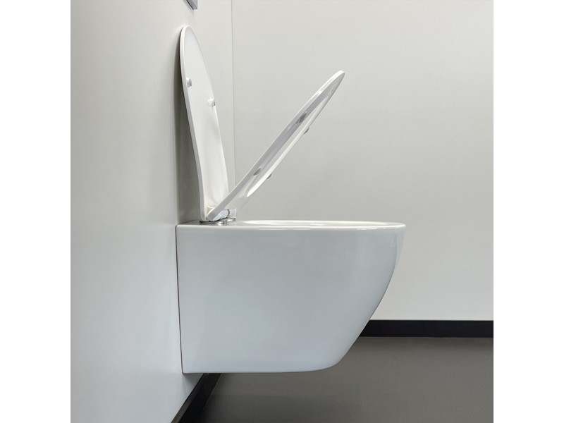 Безободковый подвесной унитаз Comforty 103 с антибактериальной легкосъемной крышкой-сиденьем с функцией плавного закрывания. Безободковая конструкция чаши обеспечивает высочайший уровень гигиены и удобство в уборке из-за отсутствия труднодоступных мест.
