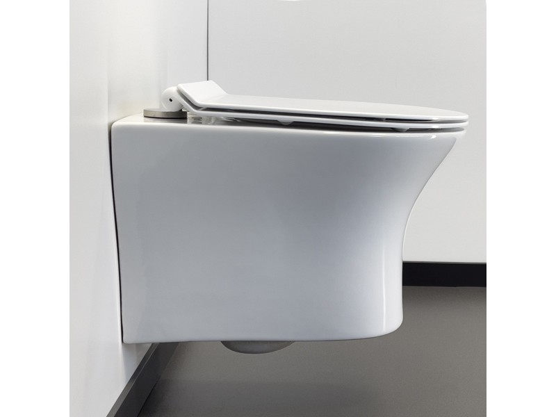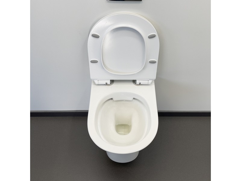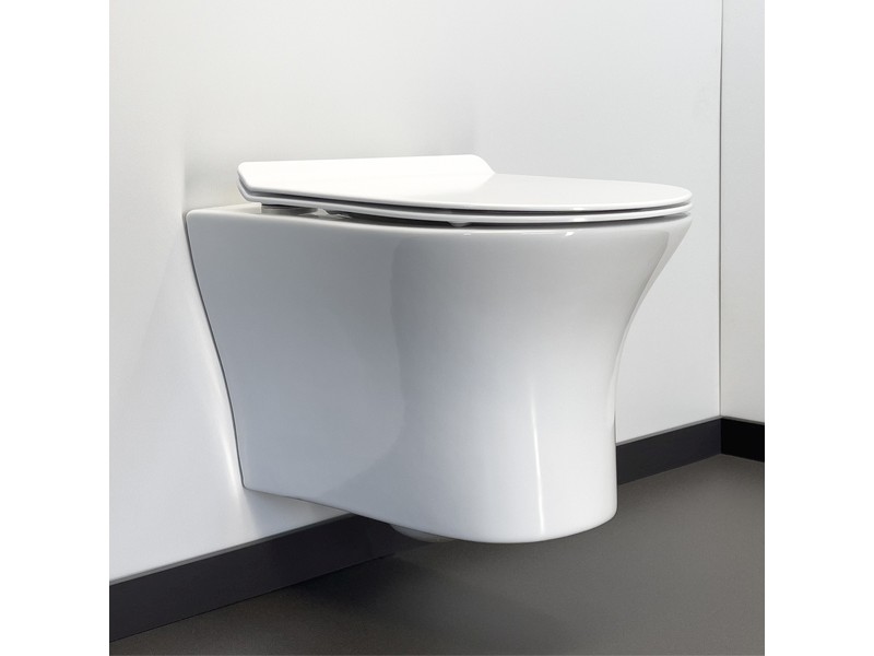 Безободковый подвесной унитаз Comforty 109 с антибактериальной легкосъемной крышкой-сиденьем с функцией плавного закрывания. Безободковая конструкция чаши обеспечивает высочайший уровень гигиены и удобство в уборке из-за отсутствия труднодоступных мест.