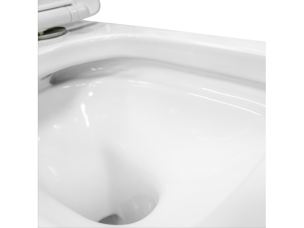 Тип смыва: смешанный смыв: вода подаётся из 3-х отверстия по задней стенке и одновременно из двух отверстий омывает боковые стенки. Встречаясь, потоки воды создают мощный напор.