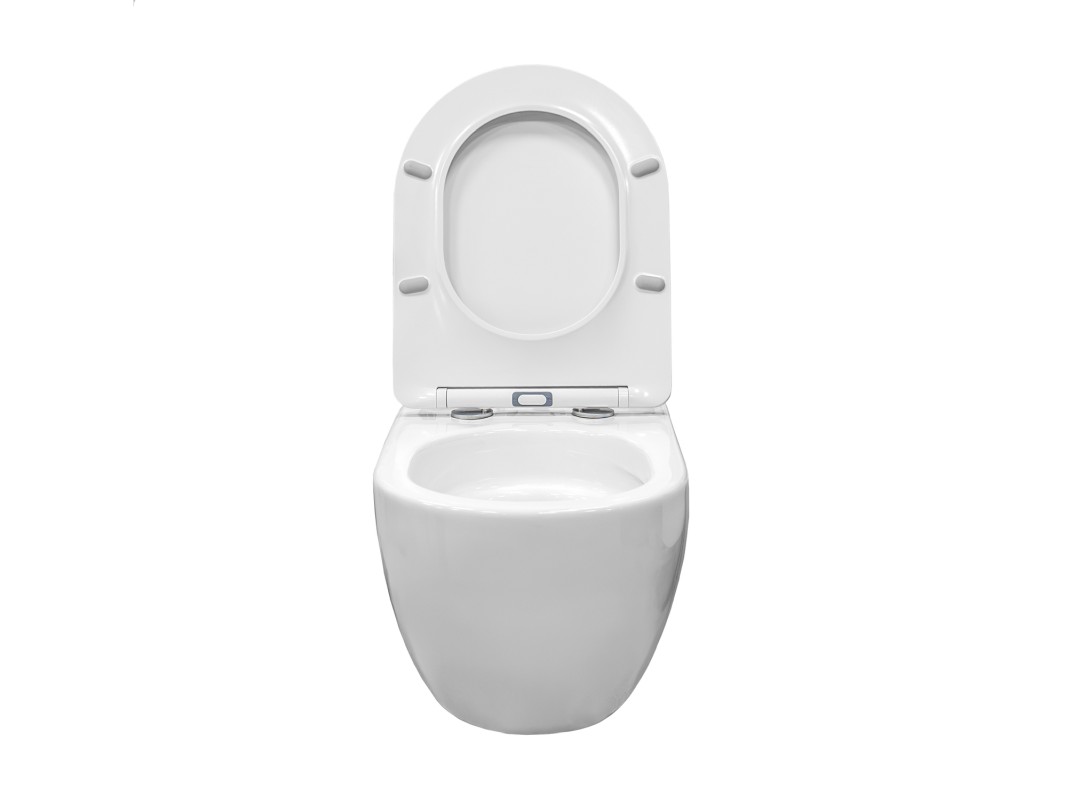 Сиденье: дюропласт с антибактериальным покрытием, с функцией микролифт (soft-close), тонкое (slim), быстросъёмное (clip-up)