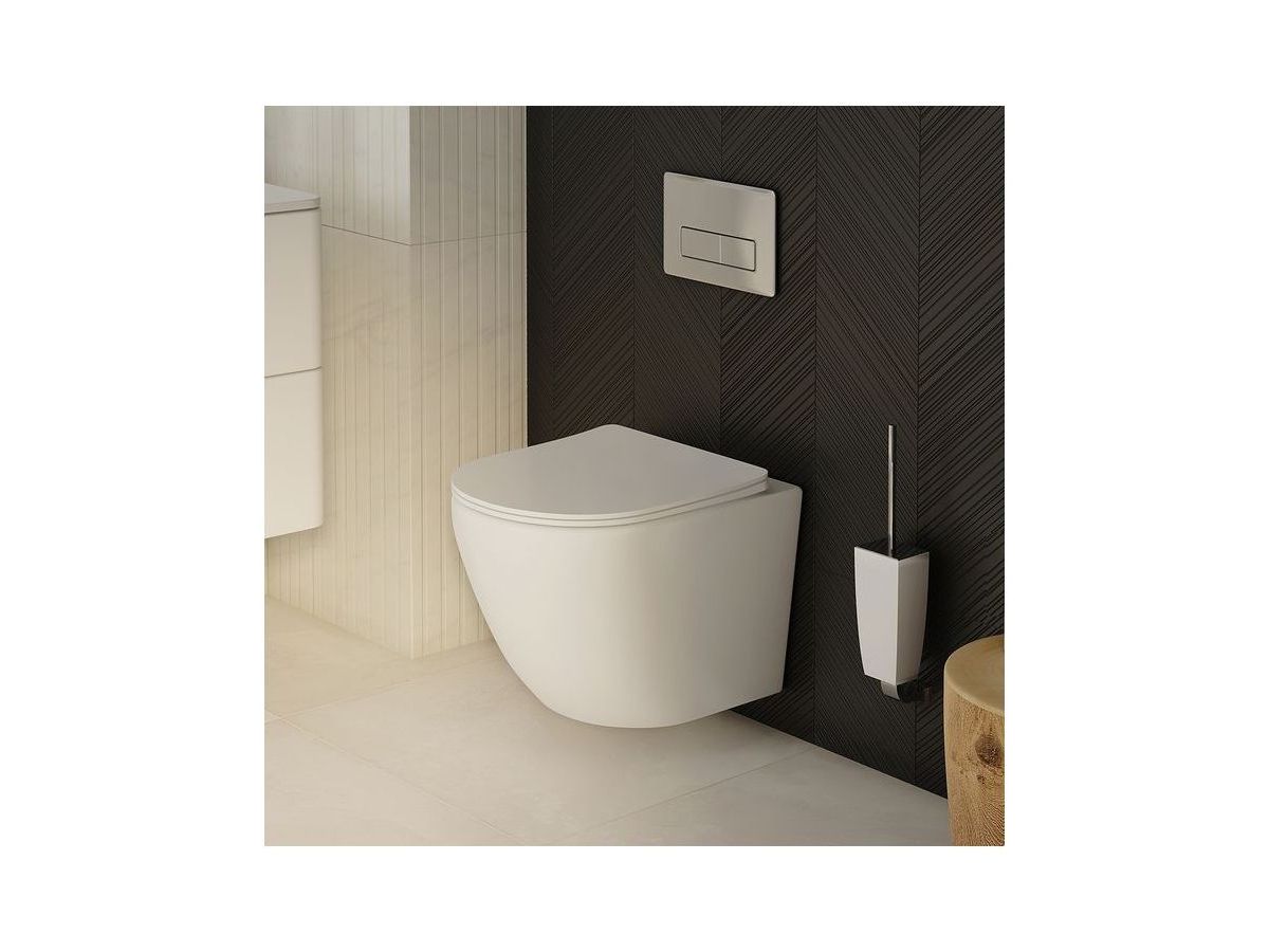 Унитаз подвесной безободковый с ультратонким сиденьем из дюропласта с функциями EasyFix и SoftClose. Размер: 480х370х370 мм. Комплект крепежа. Упаковка: картонная коробка.