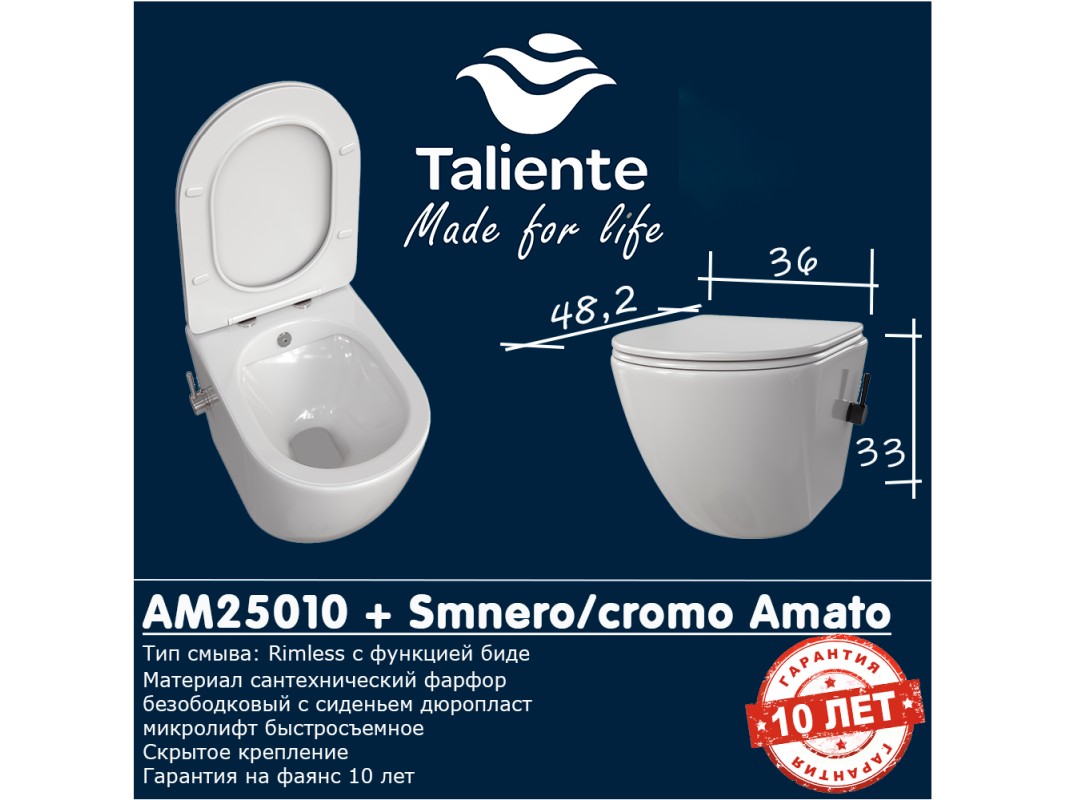Унитаз Подвесной «Taliente» Amato Smnero, Белый (AM25010 + SMnero)