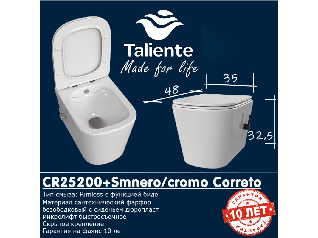 Унитаз Подвесной «Taliente» Correto Smnero, Белый (CR25200+SMnero)
