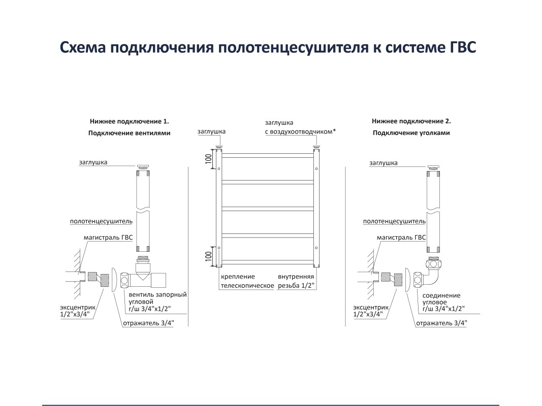 • Тип подключения – нижнее/диагональное