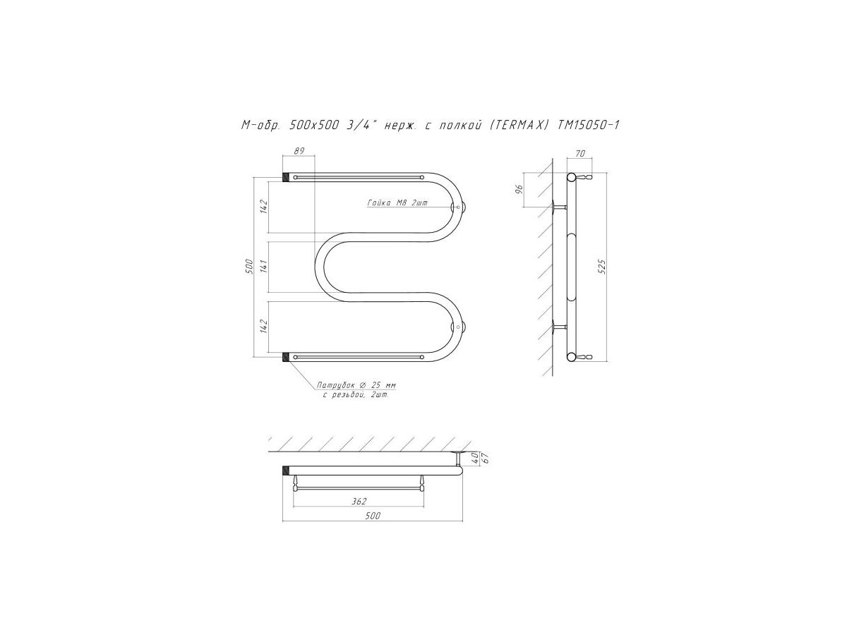 М-образный полотенцесушитель имеет форму змейки. Тип подключения – боковой. Крепление изделия к стене осуществляется при помощи телескопических держателей. Для производства продукции компания использует только высококачественную нержавеющую сталь марки AISI 304 с высоким содержанием легирующих элементов, это позволяет изделиям сохранять стойкость к агрессивным коррозийным средам, что существенно продлевает срок их эксплуатации.