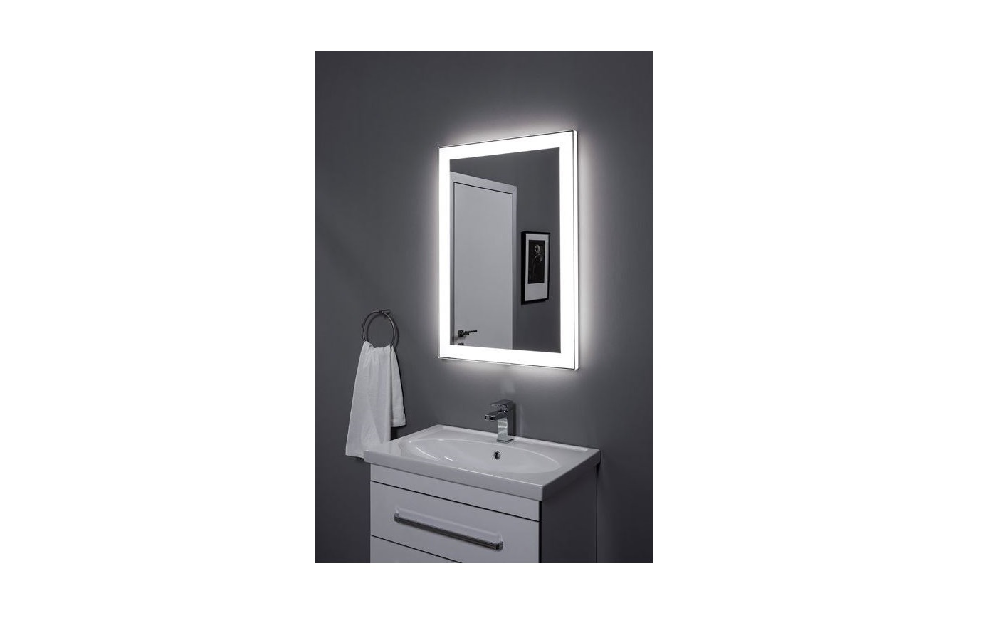 Четкие рельефные формы зеркального полотна размером 90х85, которое по периметру подчеркнуто светодиодной подсветкой, выглядят чрезвычайно эффектно. Чтобы зеркало осветилось спокойным голубоватым светом, необходимо просто провести рукой у инфракрасного датчика, который не бросается в глаза, но расположен очень удобно для пользователя. Такое зеркало отлично впишется в современный интерьер.
